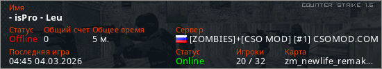 Общая информация игрока