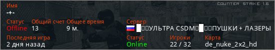 Последний раз был в сети 2 дня назад Игрок с таким ником замечен на 13 серверах