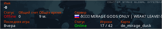 Играет на Counter Strike Global Offensive сервере. Страна: РоссияПервый раз замечен 18:08 22.02.2026