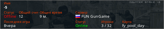 Играет на Counter Strike 1.6 сервере. Страна: РоссияПервый раз замечен 18:53 15.01.2026