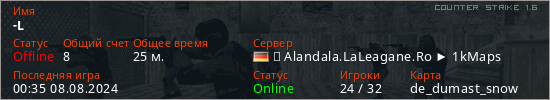 Последний раз был в сети 00:35 08.08.2024 Игрок с таким ником замечен на 8 серверах