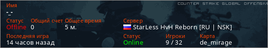 Играет на Counter Strike Global Offensive сервере. Страна: РоссияПервый раз замечен 19:25 09.12.2025