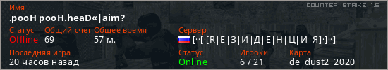 Последний раз был в сети 19 часов назад Игрок с таким ником замечен на 22 серверах