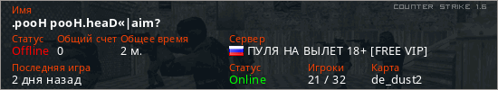 Последний раз был в сети 2 дня назад Игрок с таким ником замечен на 20 серверах