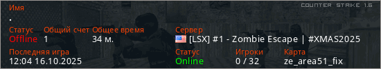 Играет на Counter Strike 1.6 сервере. Страна: СШАПервый раз замечен 17:39 13.08.2025