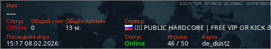 Играет на Counter Strike Global Offensive сервере. Страна: РоссияПервый раз замечен 00:13 08.02.2025