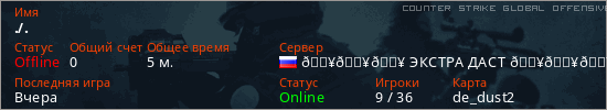 Играет на Counter Strike Global Offensive сервере. Страна: РоссияПервый раз замечен 15:39 18.04.2026