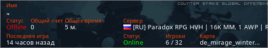 Играет на Counter Strike Global Offensive сервере. Страна: РоссияПервый раз замечен 12:54 28.12.2025