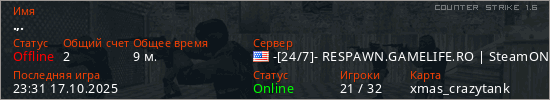 Играет на Counter Strike 1.6 сервере. Страна: СШАПервый раз замечен 22:57 17.10.2025