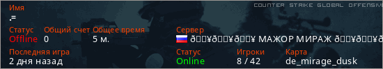 Играет на Counter Strike Global Offensive сервере. Страна: РоссияПервый раз замечен 15:19 15.04.2026