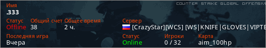 Играет на Counter Strike Global Offensive сервере. Страна: РоссияПервый раз замечен 02:14 30.11.2025