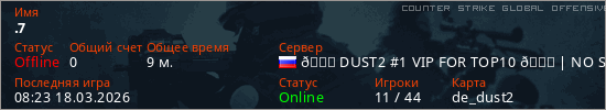 Играет на Counter Strike Global Offensive сервере. Страна: РоссияПервый раз замечен 10:09 16.03.2026