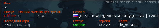 Играет на Counter Strike Global Offensive сервере. Страна: РоссияПервый раз замечен 09:18 16.03.2026