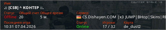 Играет на Counter Strike 1.6 сервере. Страна: ГерманияПервый раз замечен 10:16 07.04.2026