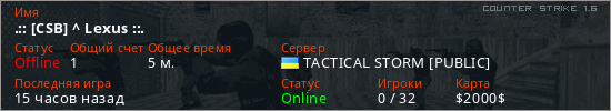 Играет на Counter Strike 1.6 сервере. Страна: УкраинаПервый раз замечен 18:40 16.02.2026