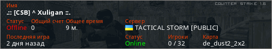Играет на Counter Strike 1.6 сервере. Страна: УкраинаПервый раз замечен 21:55 26.02.2026