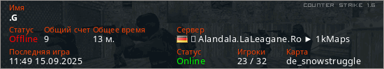 Последний раз был в сети 11:49 15.09.2025 Игрок с таким ником замечен на 16 серверах