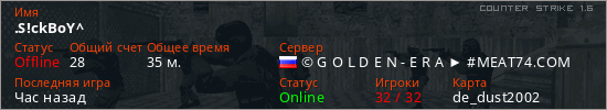 Играет на Counter Strike 1.6 сервере. Страна: РоссияПервый раз замечен 17:12 21.04.2026