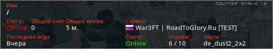 Играет на Counter Strike 1.6 сервере. Страна: РоссияПервый раз замечен 15:44 28.01.2026