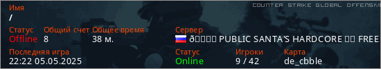 Играет на Counter Strike Global Offensive сервере. Страна: РоссияПервый раз замечен 12:18 30.01.2025