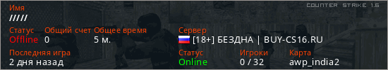 Играет на Counter Strike 1.6 сервере. Страна: РоссияПервый раз замечен 11:10 10.03.2026