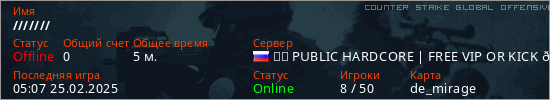 Играет на Counter Strike Global Offensive сервере. Страна: РоссияПервый раз замечен 05:03 25.02.2025