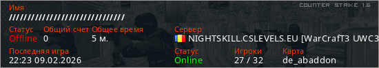 Играет на Counter Strike 1.6 сервере. Страна: РумынияПервый раз замечен 22:21 09.02.2026