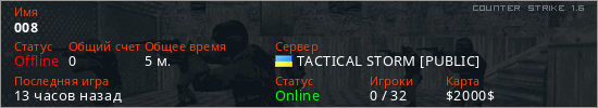 Играет на Counter Strike 1.6 сервере. Страна: УкраинаПервый раз замечен 19:38 16.02.2026