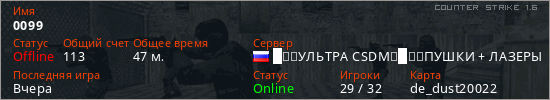 Последний раз был в сети Вчера Игрок с таким ником замечен на 6 серверах