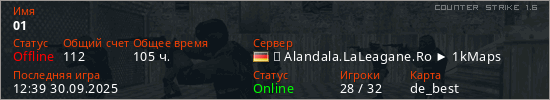 Последний раз был в сети 12:39 30.09.2025 Игрок с таким ником замечен на 51 сервере