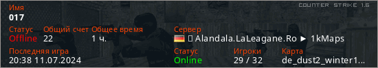 Играет на Counter Strike 1.6 сервере. Страна: ГерманияПервый раз замечен 08:43 17.06.2024