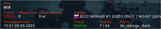 Играет на Counter Strike Global Offensive сервере. Страна: РоссияПервый раз замечен 13:04 02.03.2025