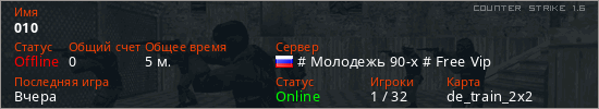 Последний раз был в сети Вчера Игрок с таким ником замечен на 33 серверах