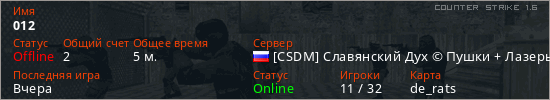Последний раз был в сети Вчера Игрок с таким ником замечен на 29 серверах