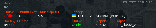 Играет на Counter Strike 1.6 сервере. Страна: УкраинаПервый раз замечен 16:12 08.03.2026