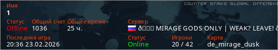 Играет на Counter Strike Global Offensive сервере. Страна: РоссияПервый раз замечен 13:58 11.02.2024