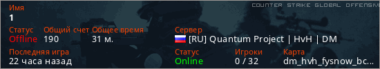 Играет на Counter Strike Global Offensive сервере. Страна: РоссияПервый раз замечен 22:13 27.03.2026