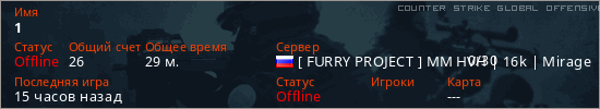 Играет на Counter Strike Global Offensive сервере. Страна: РоссияПервый раз замечен 19:36 26.02.2026
