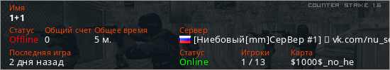 Последний раз был в сети 2 дня назад Игрок с таким ником замечен на 4 серверах