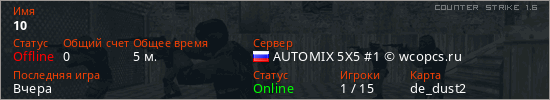 Последний раз был в сети Вчера Игрок с таким ником замечен на 51 сервере