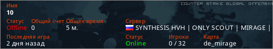 Играет на Counter Strike Global Offensive сервере. Страна: РоссияПервый раз замечен 23:36 23.01.2026