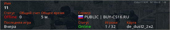 Играет на Counter Strike 1.6 сервере. Страна: РоссияПервый раз замечен 23:16 04.04.2026