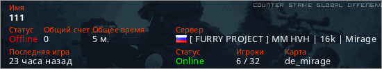 Играет на Counter Strike Global Offensive сервере. Страна: РоссияПервый раз замечен 15:26 20.03.2026