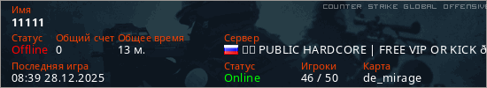 Последний раз был в сети 08:39 28.12.2025 Игрок с таким ником замечен на 53 серверах