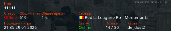 Играет на Counter Strike 1.6 сервере. Страна: РумынияПервый раз замечен 20:56 28.07.2022