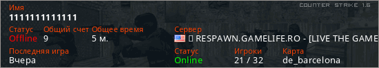 Последний раз был в сети Вчера Игрок с таким ником замечен на 30 серверах
