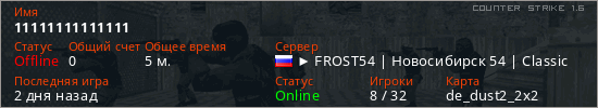 Последний раз был в сети 2 дня назад Игрок с таким ником замечен на 30 серверах