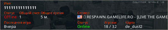 Играет на Counter Strike 1.6 сервере. Страна: СШАПервый раз замечен 22:16 06.04.2026