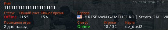 Играет на Counter Strike 1.6 сервере. Страна: СШАПервый раз замечен 02:06 29.01.2025