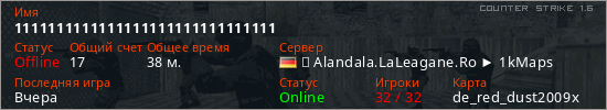 Последний раз был в сети Вчера Игрок с таким ником замечен на 31 сервере